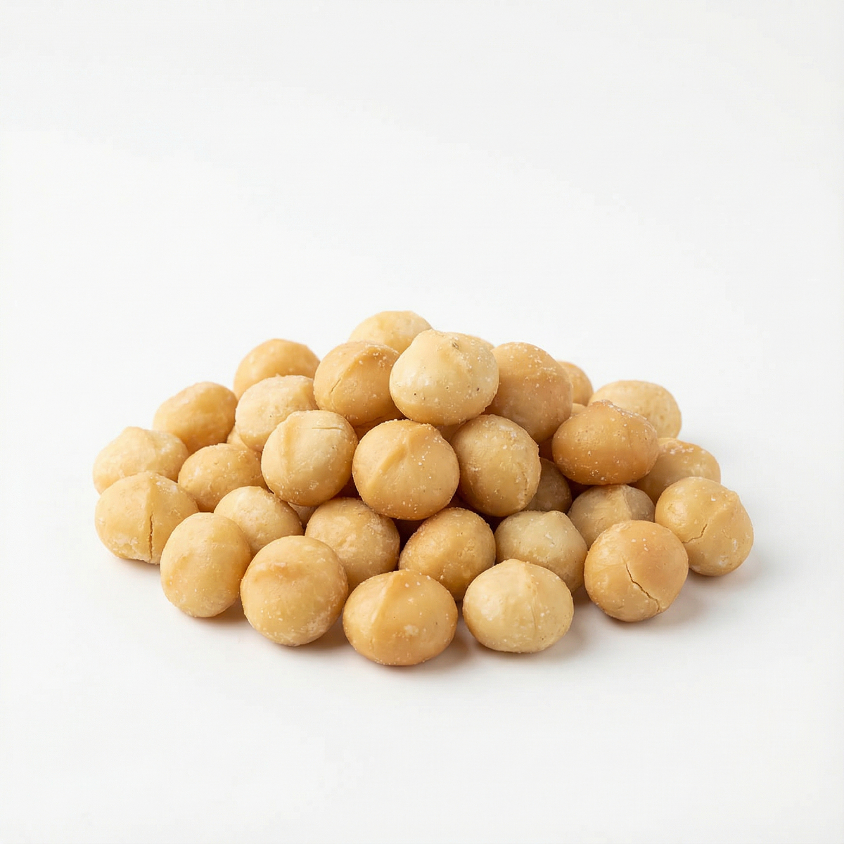 Geniet van deze ambachtelijk gebrande macadamianoten, beroemd om hun zachte, romige structuur en luxe smaak.