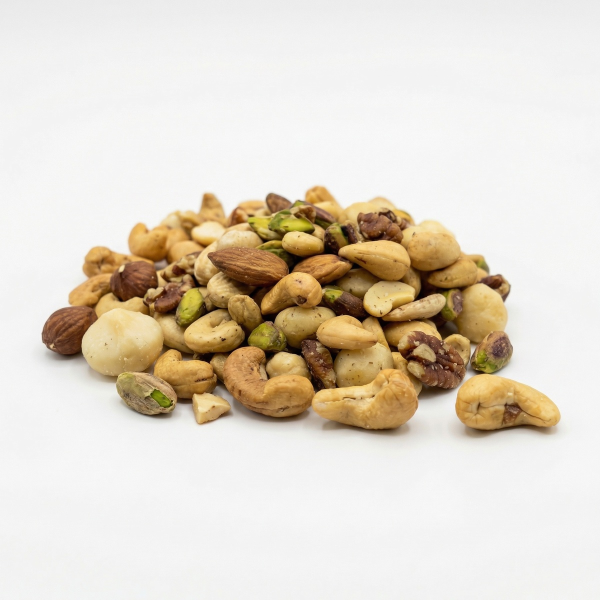Een krachtige notenmix met gebrande cashew, amandel, macadamia, hazelnoot en pistache. Vol van smaak en heerlijk krokant.