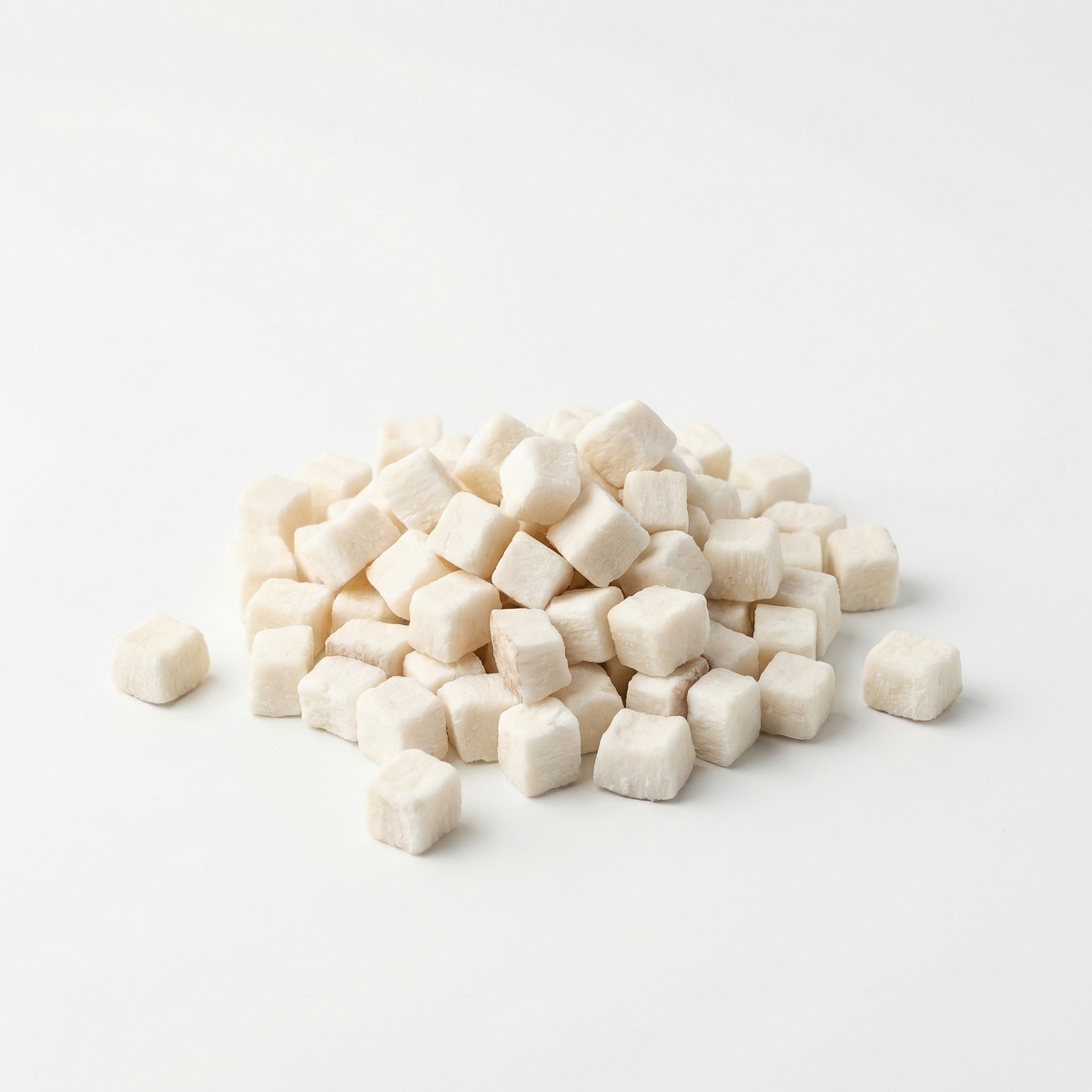Zachte, witte kokosblokjes met een lichtzoete kokossmaak en stevige bite. Ideaal voor gebruik in baksels, desserts, yoghurt, ontbijt of als decoratie.