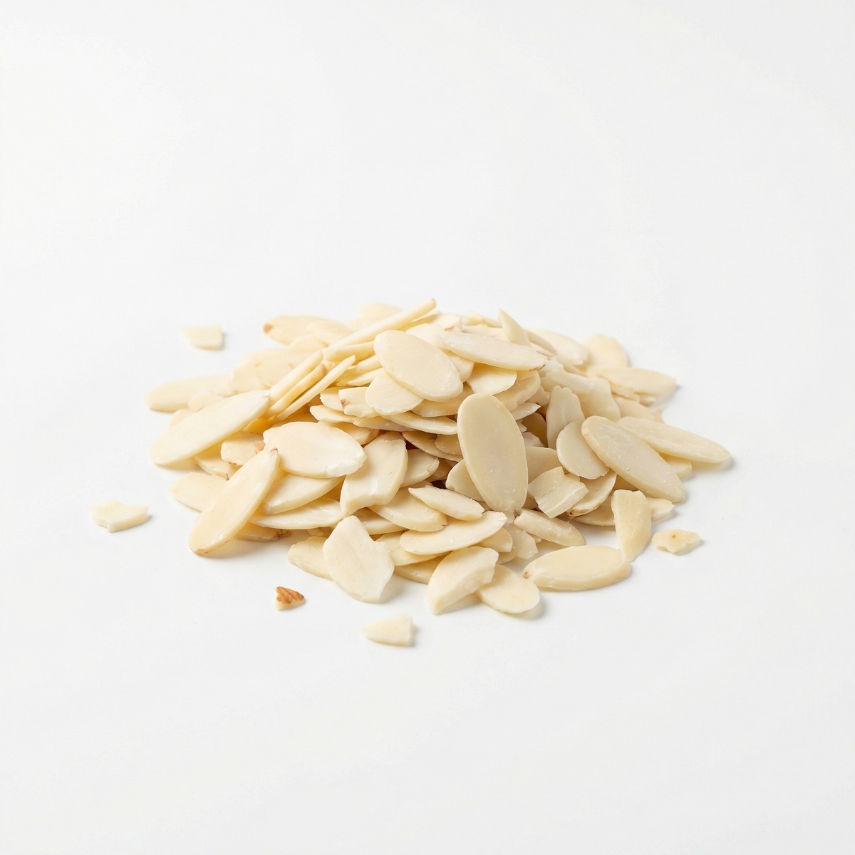 Extra dun geschaafde, geblancheerde amandelen met een lichte kleur en knapperige structuur. Perfect als topping voor gebak, desserts, salades of als ingrediënt in diverse baktoepassingen.