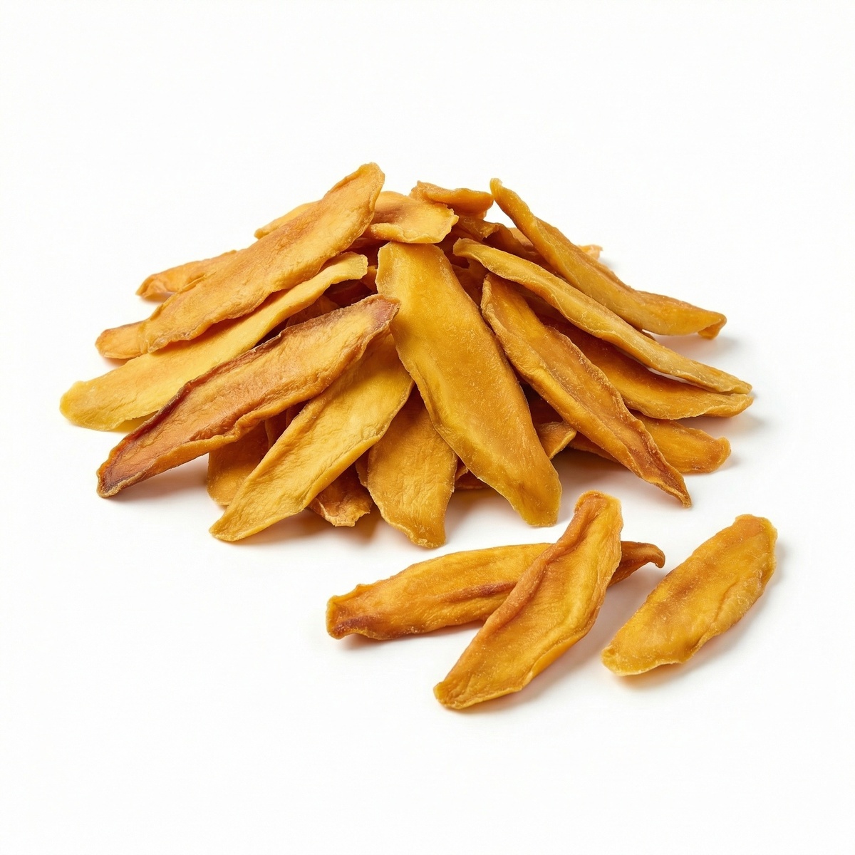 Zachte, gedroogde mango schijven met een natuurlijk zoete smaak. Puur fruit, zonder toegevoegd suiker, ideaal als verantwoorde snack of door yoghurt en ontbijt.