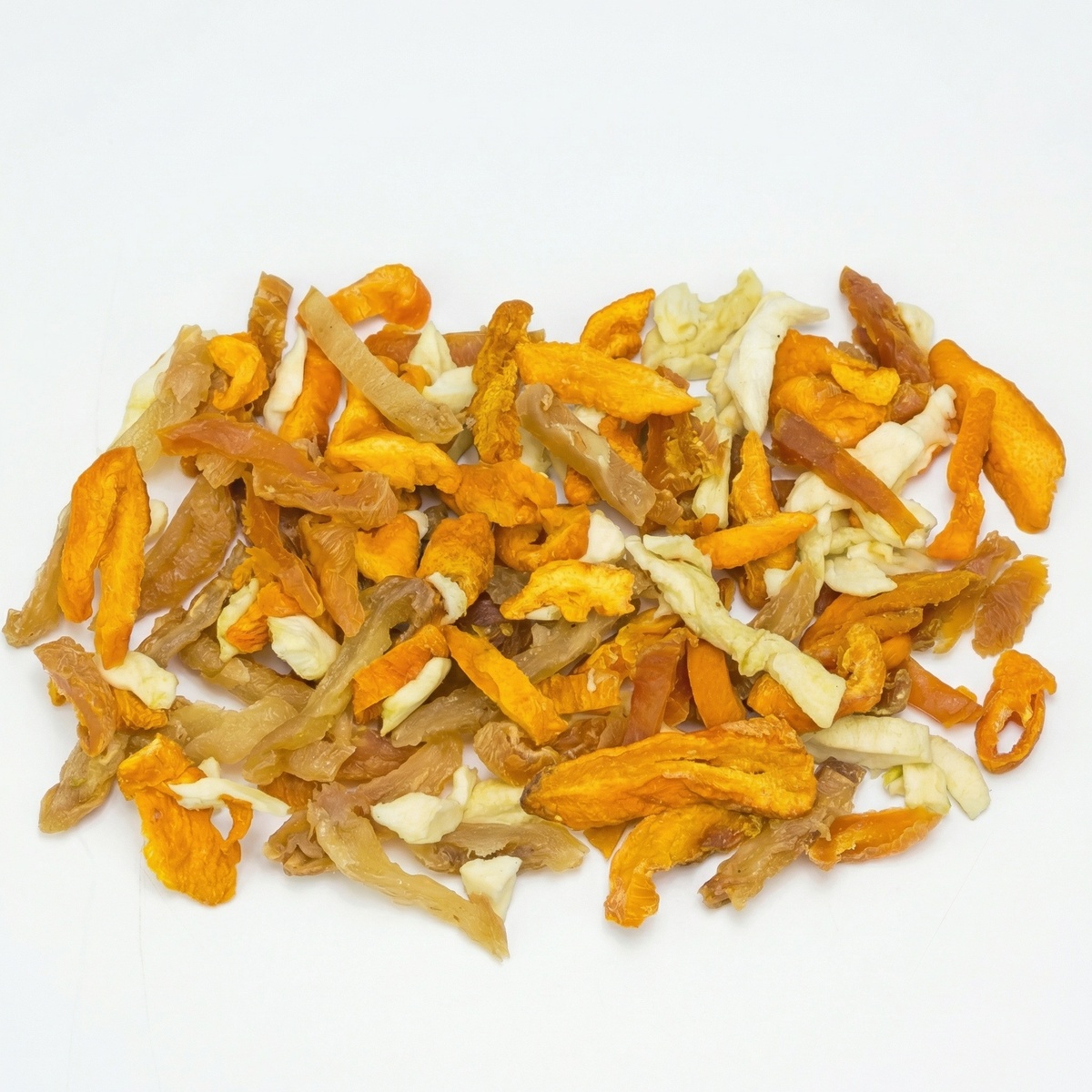 Strips van gemengd gedroogd fruit met een zachte, natuurlijke zoetheid. Een kleurrijke mix van peer, abrikoos, perzik en appel, heerlijk als snack of door yoghurt, ontbijt en desserts.