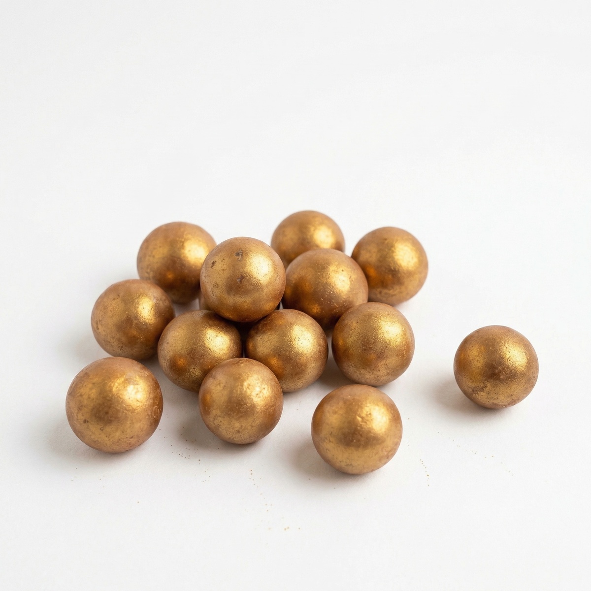 Witte, knapperige chocoladeballetjes met een luxe goudkleurige parelmoercoating. Romig van smaak met een krokante bite, perfect als decoratie of luxe snack.