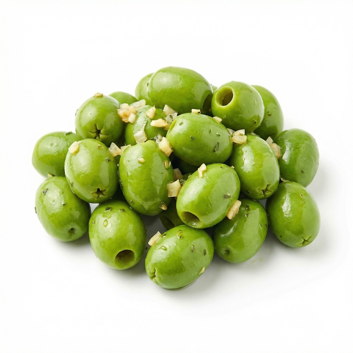 Fel groene olijven zonder pit, gemarineerd in raapolie en op smaak gebracht met knoflook en bieslook. Fris, hartig en licht kruidig van smaak. Een toegankelijke mediterrane olijf die uitstekend past bij tapas, salades of als smaakvolle borrelhap.
