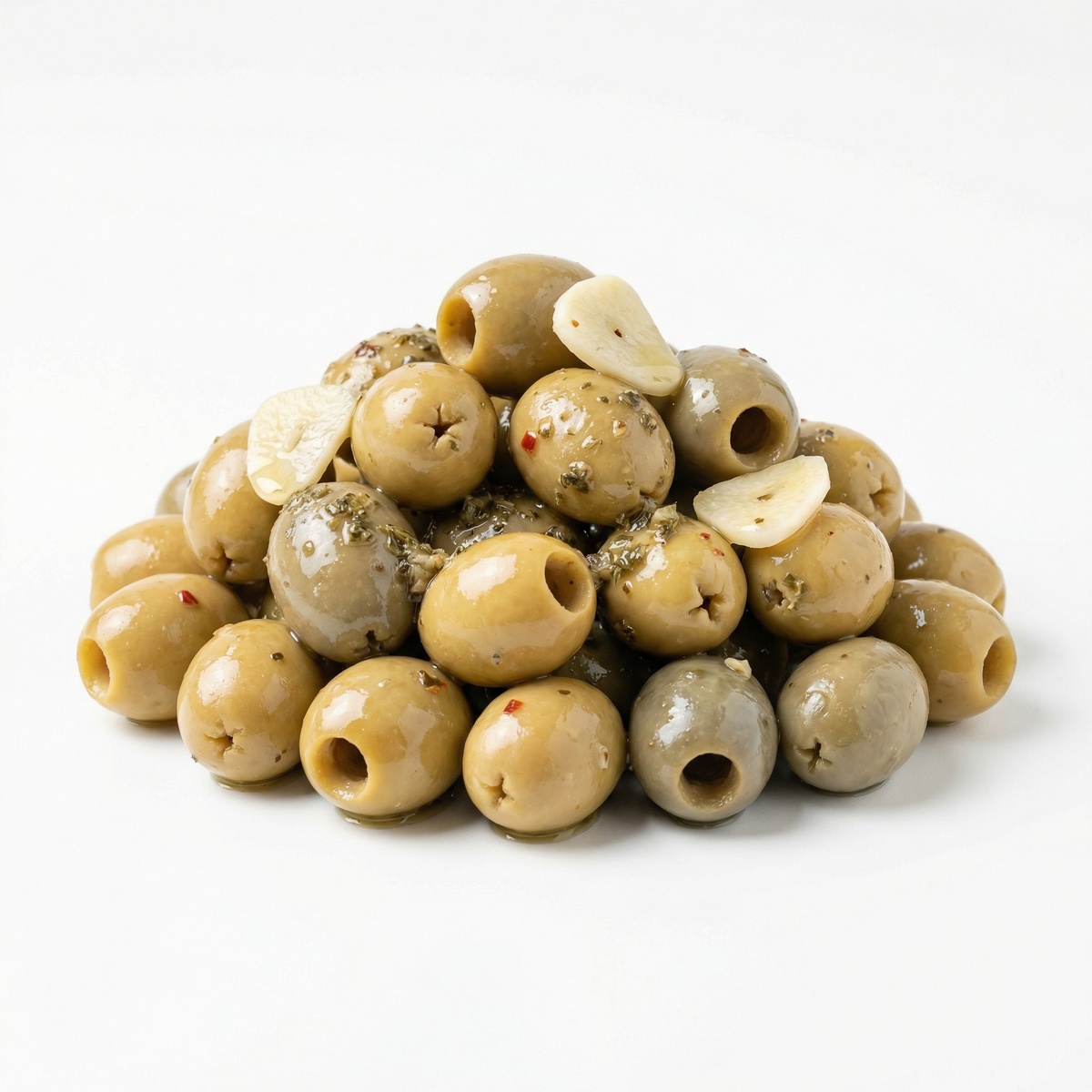 Kleine groene olijven met een zachte bite, gemarineerd in raapzaadolie en op smaak gebracht met knoflook en basilicum. Fris, kruidig en toegankelijk van smaak. Door het kleinere formaat zeer geschikt als borrelhapje of als onderdeel van tapas en salades.