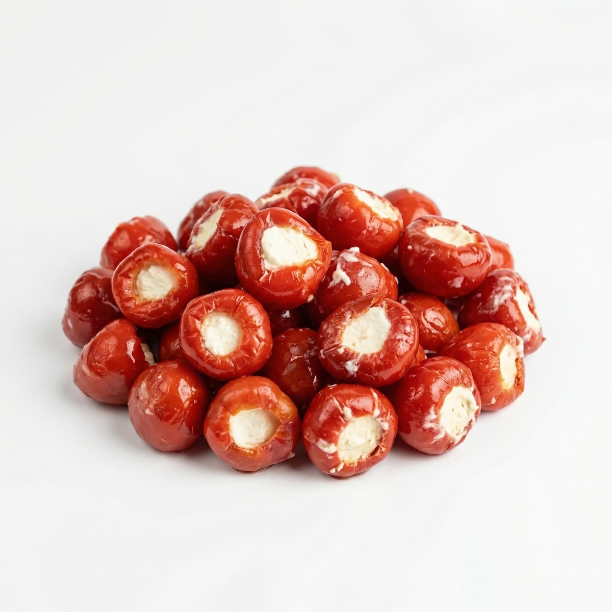 Zoete rode sweetpeppers gevuld met een romige, licht zoete roomkaasvulling en in olie. De combinatie van friszoete paprika en zachte roomkaas zorgt voor een volle, toegankelijke smaak. Ideaal als borrelhapje, tapasproduct of als onderdeel van een mediterrane borrelplank.