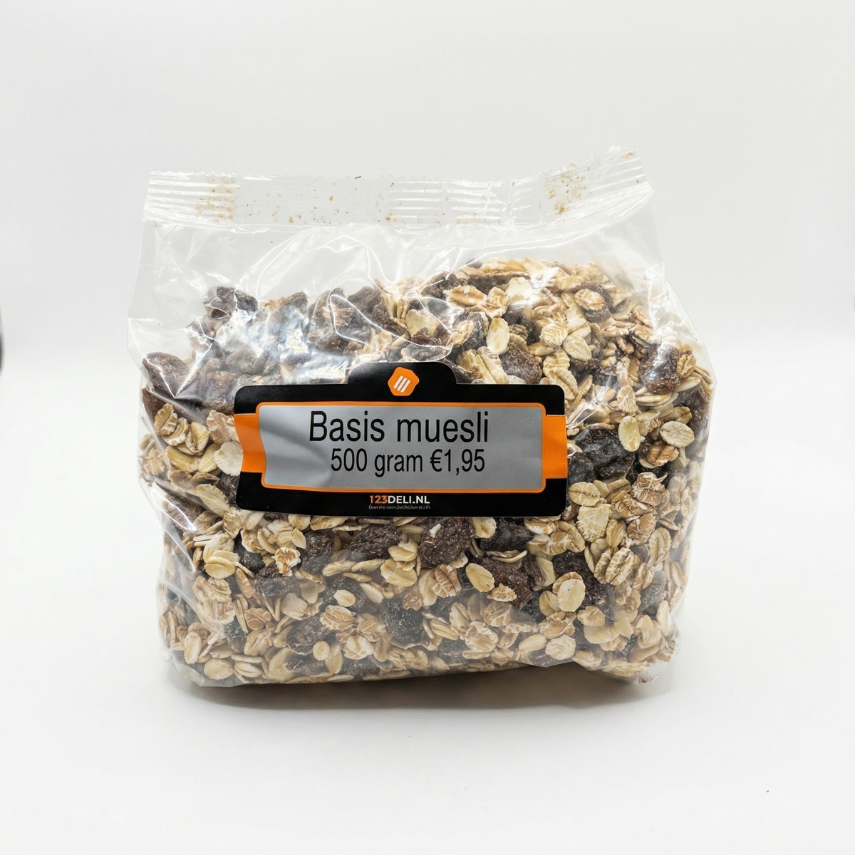 Klassieke muesli van granenvlokken en zoete sultanarozijnen. Puur en vezelrijk van smaak, ideaal voor ontbijt met melk, yoghurt of kwark.