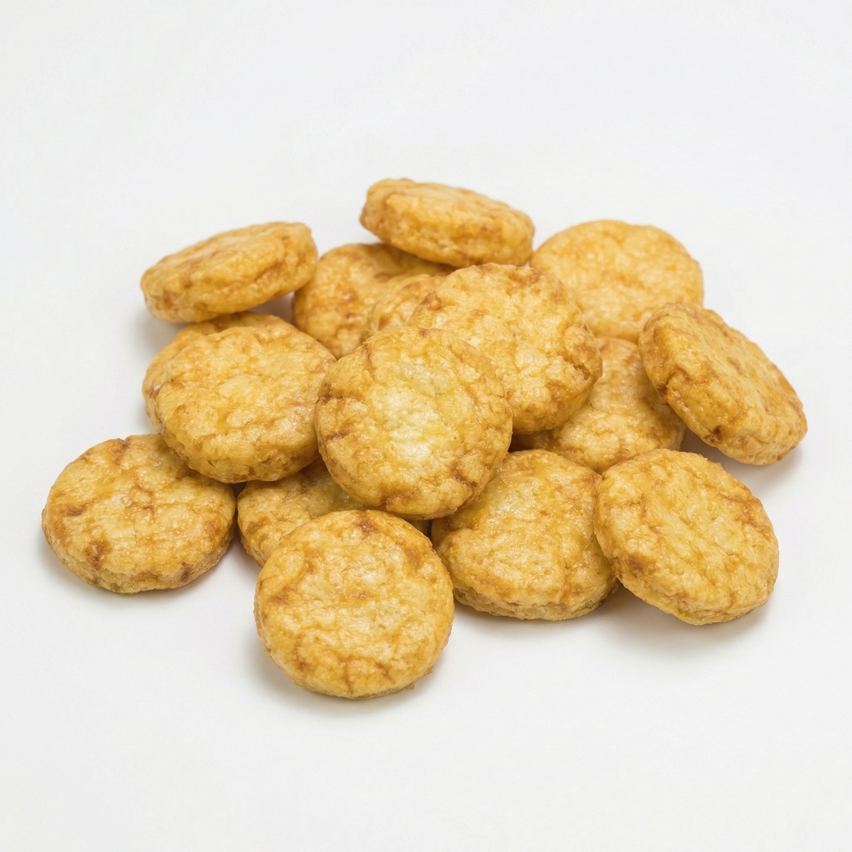Knapperige gebakken rijstcrackers met een hartige sojasaussmaak. Bros van structuur en goudbruin van kleur met een licht zoete en umami smaak. Ideaal als borrelsnack of onderdeel van een Aziatisch snackassortiment.